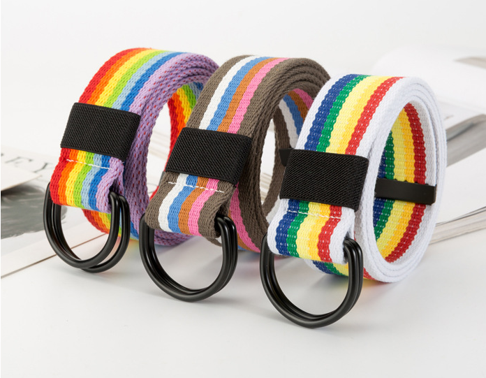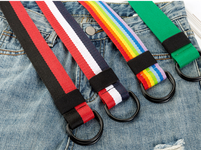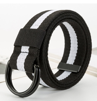 Cinturón de lona Cinturón versátil Cinturón de doble hebilla Cinturón de lona a rayas para hombres y mujeres