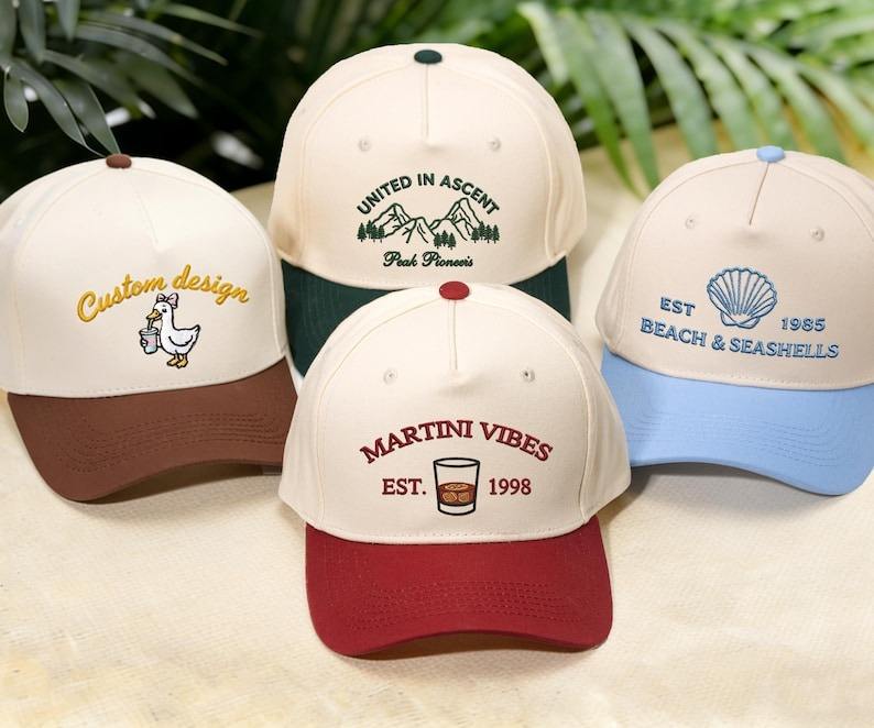 Gorra de Lona Dobby Estilo Dad Hat, Bicolor, con Logotipo Bordado, 5 Paneles, Ajustable, Transpirable, Impermeable, Deportiva, Unisex, Retro, Vintage