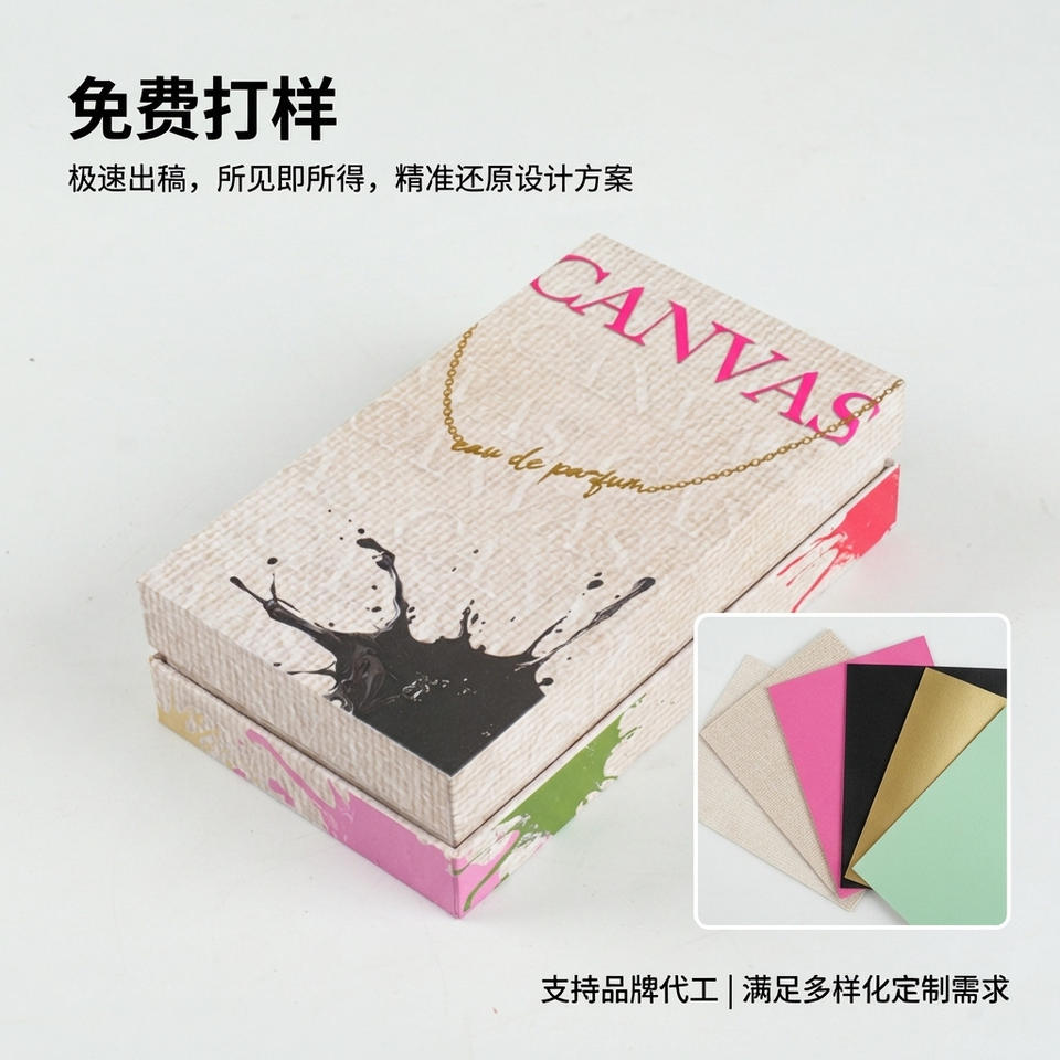 Caja de regalo de perfume de lona, embalaje de papel de lujo personalizado con tapa para sets de fragancias