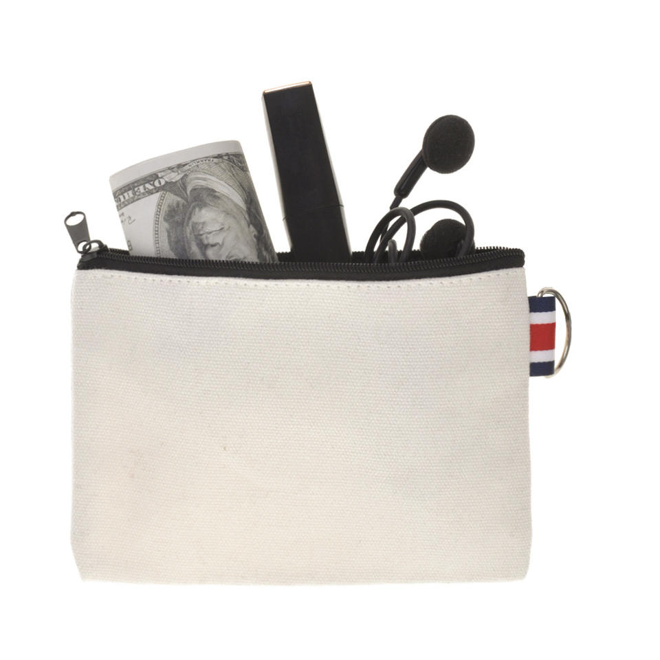 Canvas Storage Bag With Metal Ring Zipper Closure White And Black Horizontal Square Shape For Everyday Use