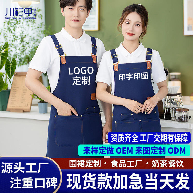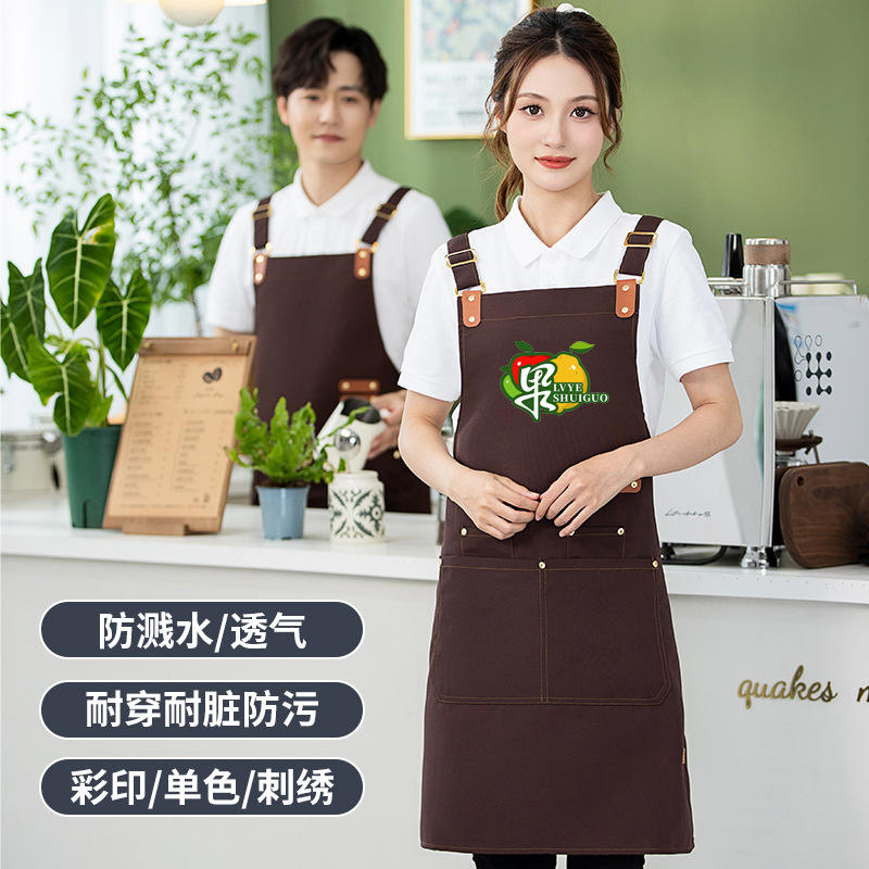 Delantal impermeable de lona con correa ajustable y bolsillos para ropa de trabajo en cafeterías y tiendas de té
