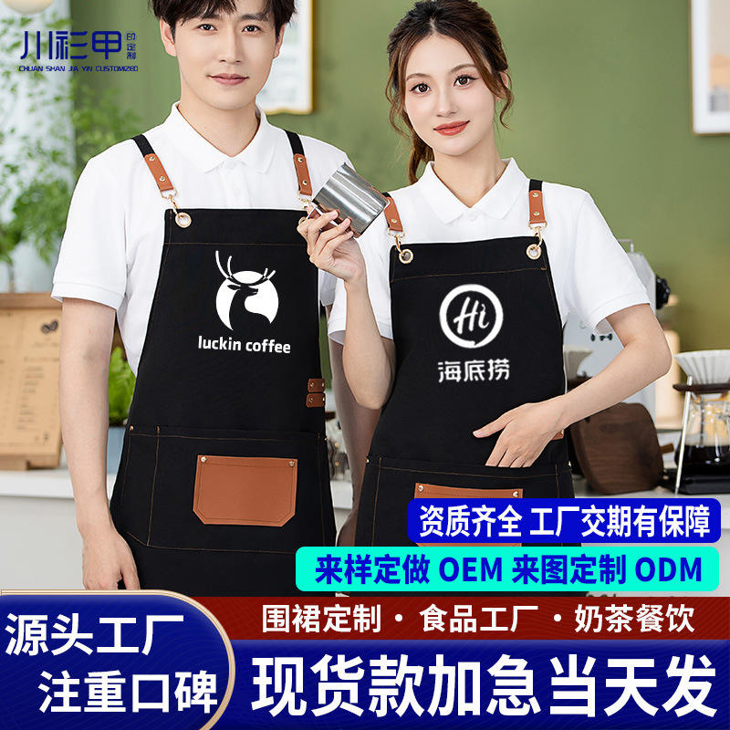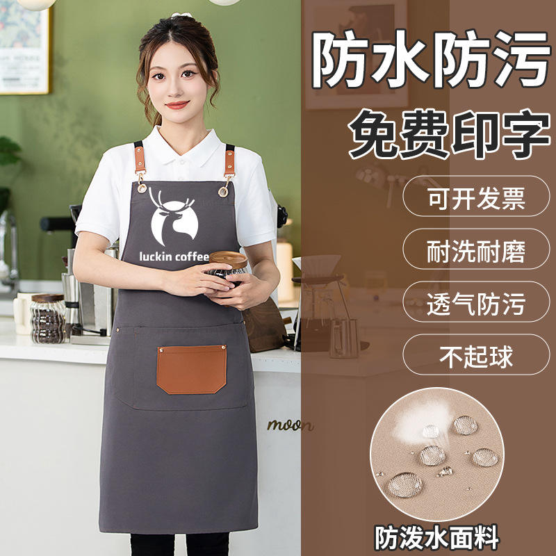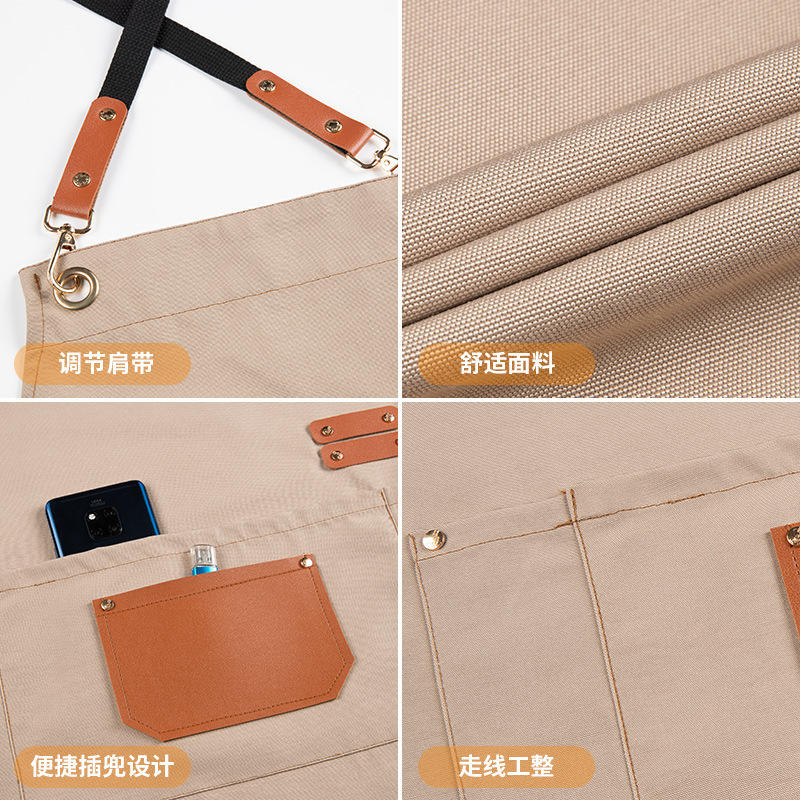 Delantal cruzado impermeable de lona con bolsillo de cuero, talla única, ropa de trabajo de poliéster para cafetería, frutería