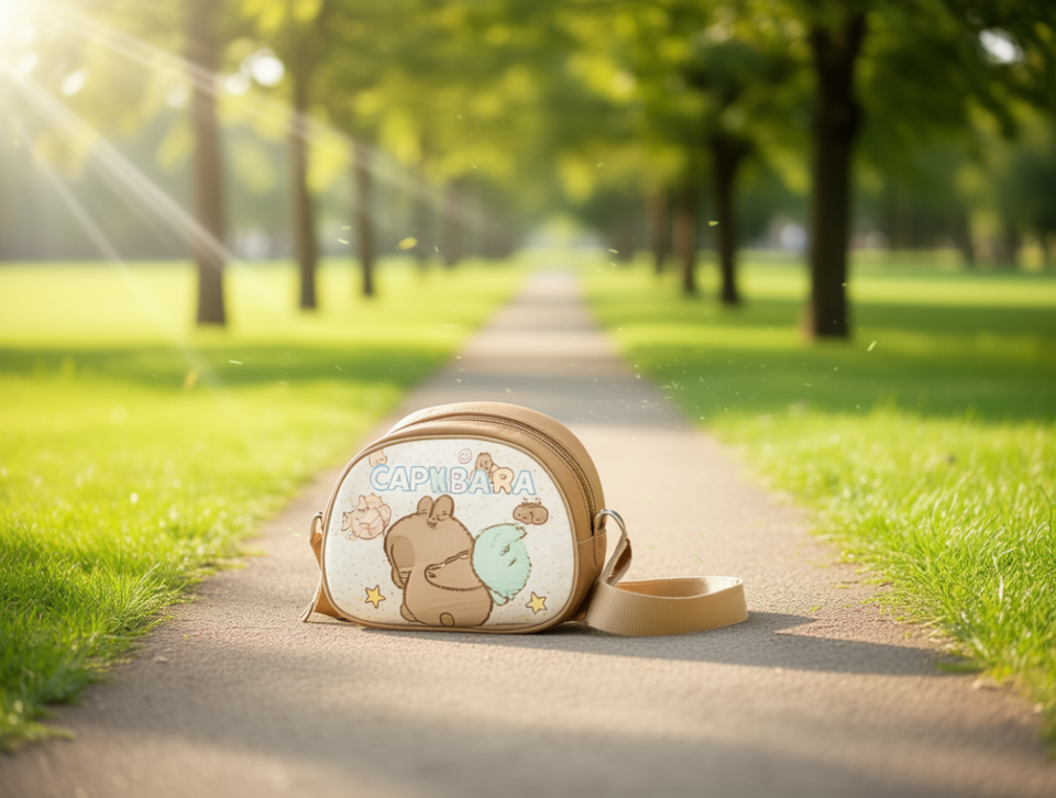Bolso Bandolera de Dibujos Animados de Capibara, 7 Pulgadas, Correa Única, Cierre de Cremallera, Poliéster, Uso Diario