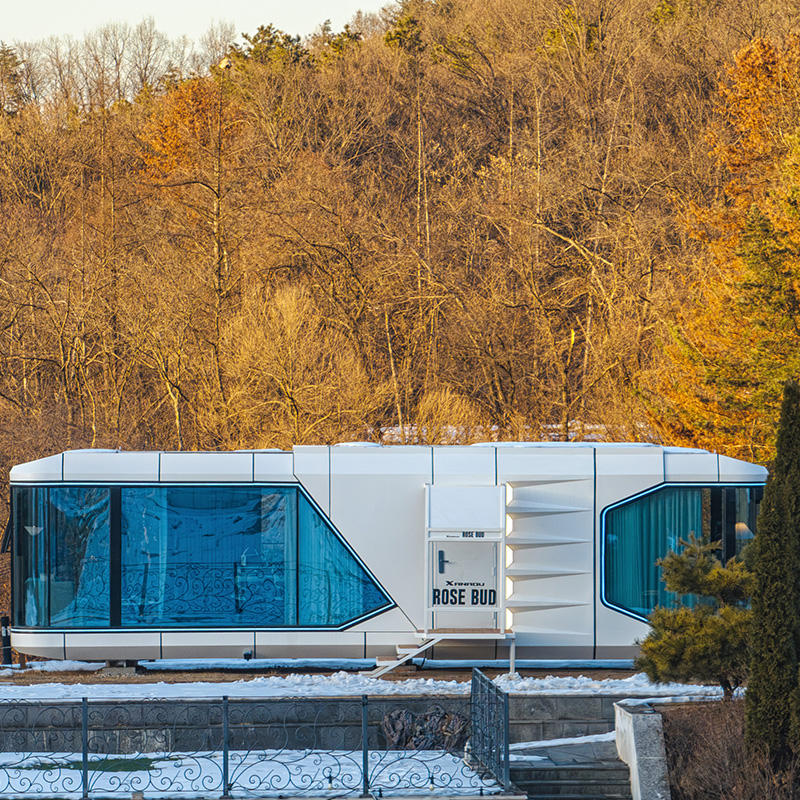 Unidad prefabricada Capsule Castle de dos plantas, estructura de acero, diseño de lujo con sala, cocina y baño, para resorts o negocios Airbnb
