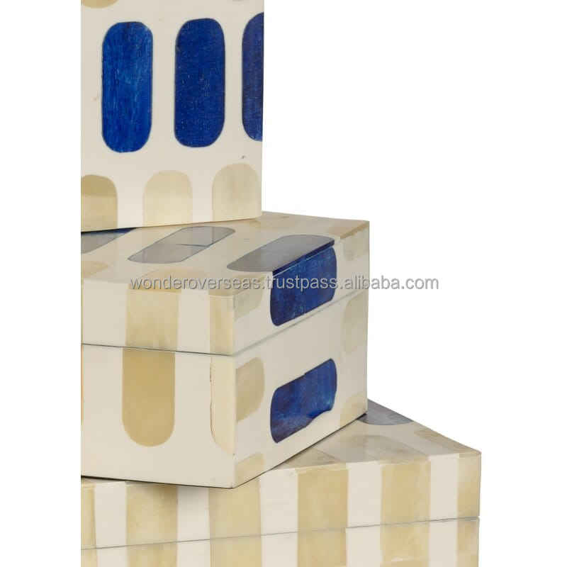 Cajas de almacenamiento con incrustaciones de hueso rectangulares de WONDER OVERSEAS, diseño de 3 cápsulas, decoración del hogar, organizador de joyas, MOQ, 100 Uds.