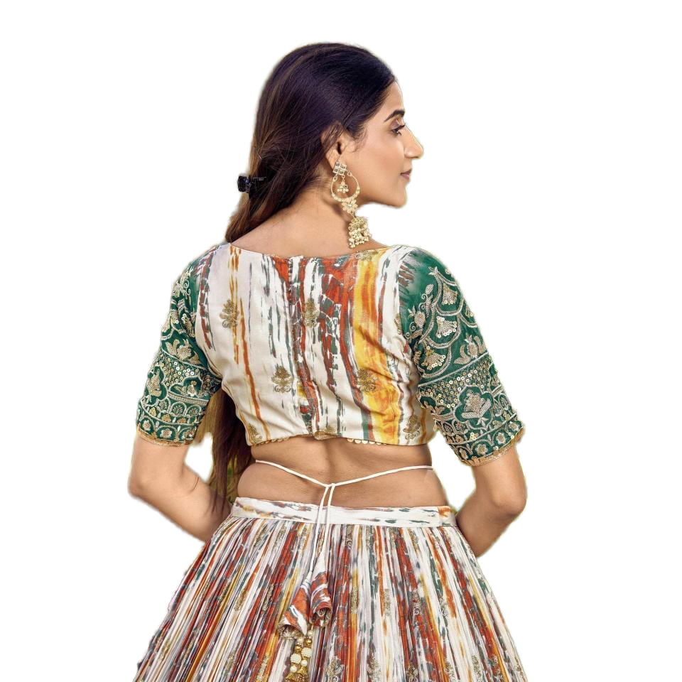Conjuntos cautivadores para mujer Blanco y verde Impreso digital Chinon Lehenga Choli