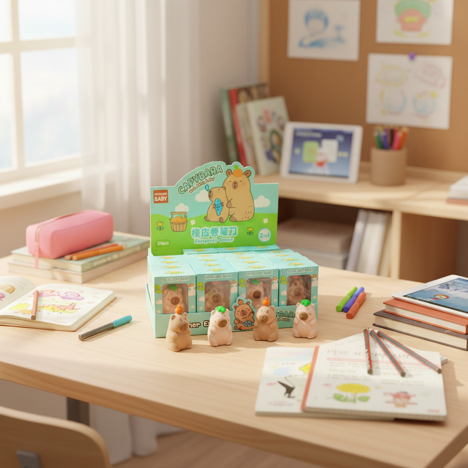 Sacapuntas de Plástico con Diseño de Capibara, Regalo para Estudiantes y Trabajadores de Oficina