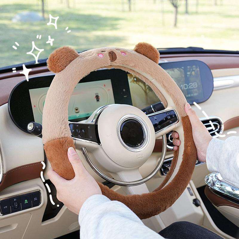 Funda para Volante de Peluche de Capibara, Suave, Antideslizante, Accesorio de Coche de Dibujos Animados