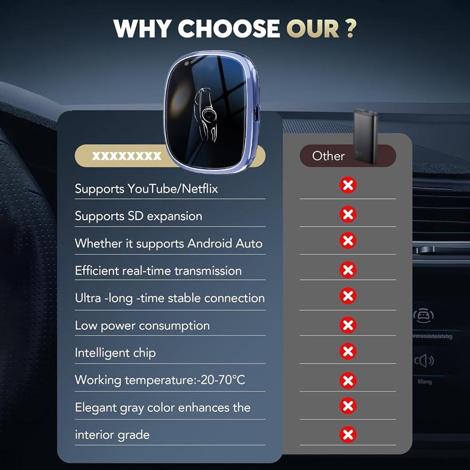 Adaptador Inalámbrico CarPlay Android Auto para Auto, Pantalla de 7 Pulgadas, 4+64GB, Ranura para Tarjeta SIM, Duplicación de Pantalla, Caja Inteligente Portátil para Auto