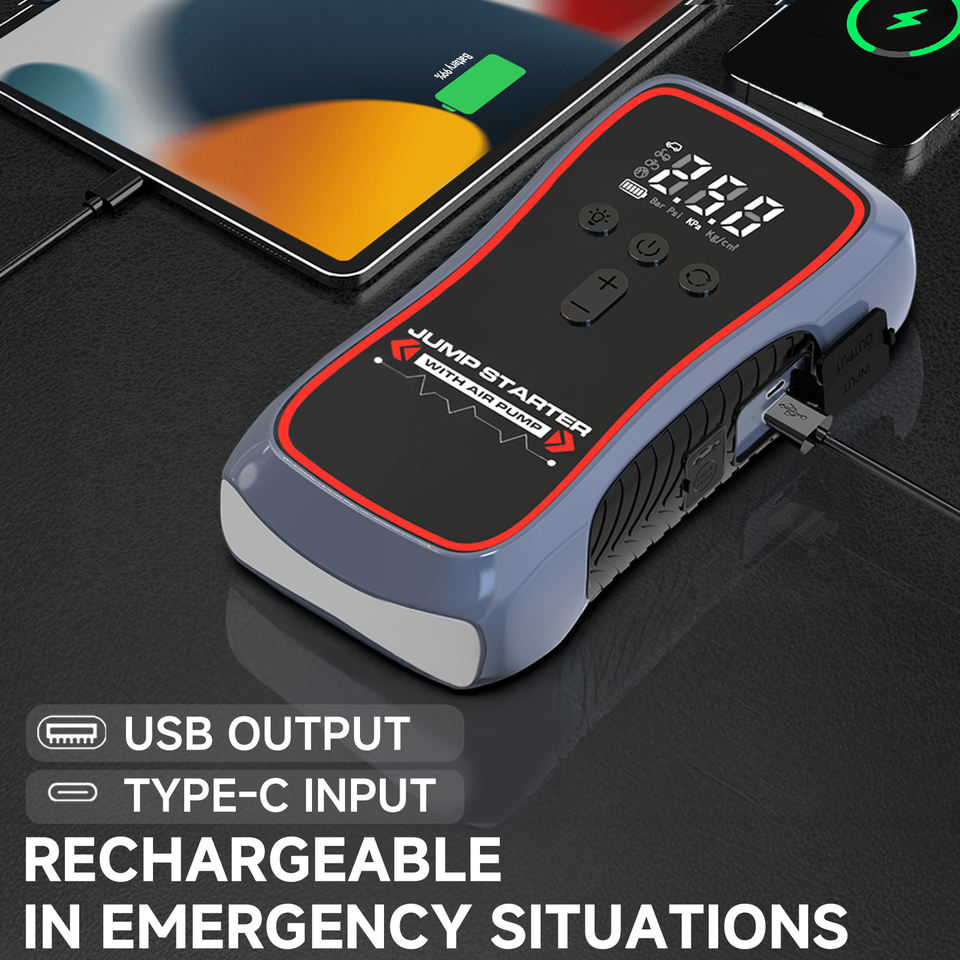 Arrancador de Batería de Coche Inflador de Neumáticos Arrancador Banco de Energía Arrancador Compresor de Aire Portátil