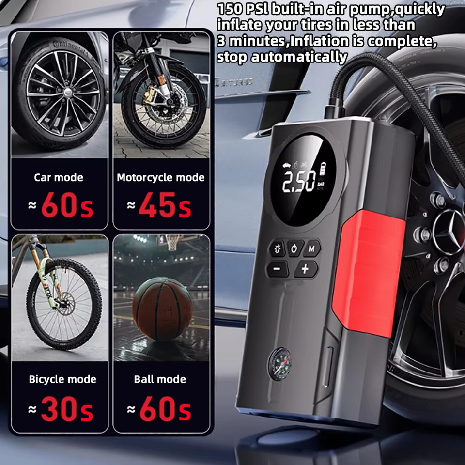 Arrancador de batería para coche con inflador de neumáticos, power bank y compresor de aire portátil