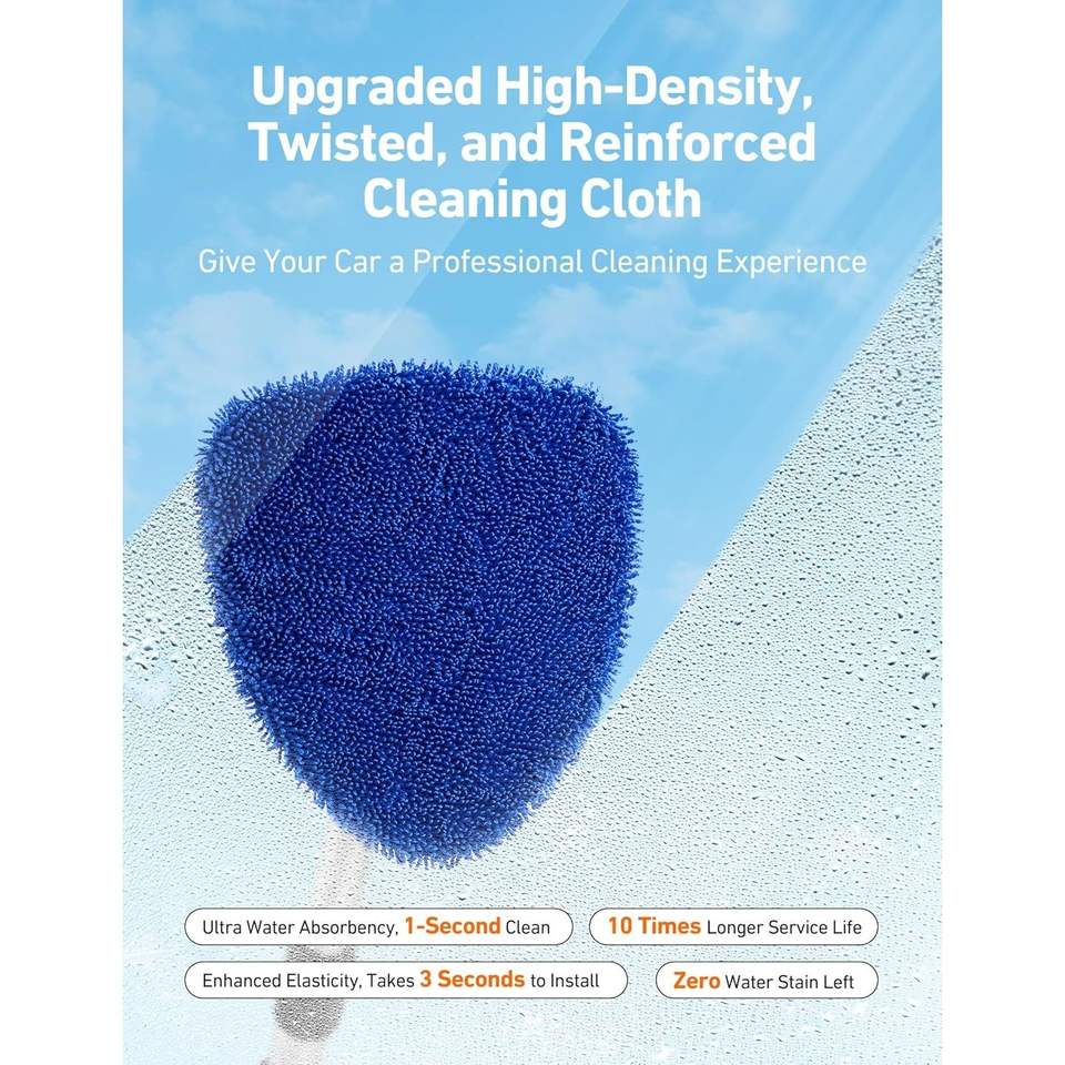 Kit de Herramientas para Limpieza de Autos con Mango Extensible y 4 Almohadillas de Microfibra Reutilizables de Alta Densidad para Detallado Interior