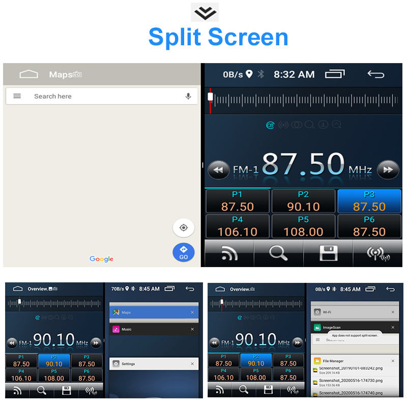 GPS, Estéreo, Enlace espejo, Imagen en la imagen, Pantalla dividida, Administrador de archivos, Coche de Control de volanteFunción
