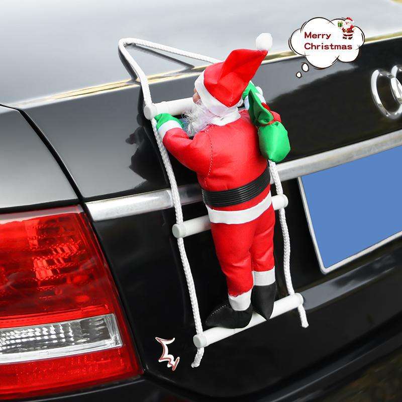 Adornos Decorativos para Coche, Papá Noel Trasero Subiendo Escaleras, Navidad, 45 cm, Fácil Instalación, Ambiente Creativo