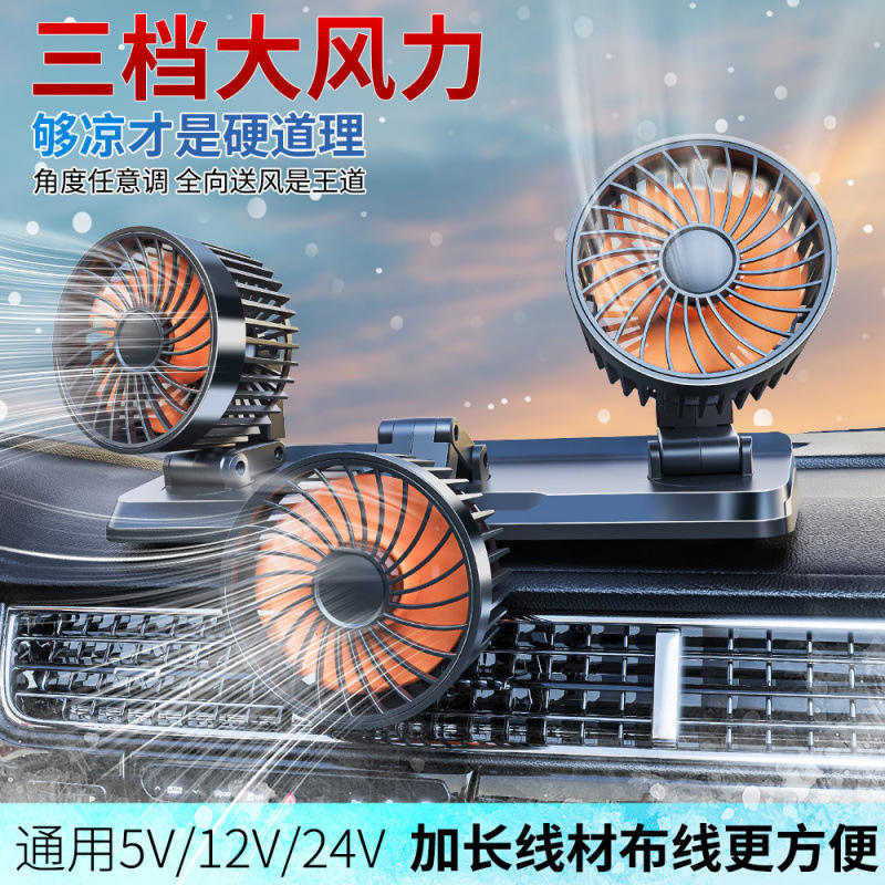 Ventilador de coche de 3 cabezales, 6 pulgadas, 12V 24V, refrigeración para salpicadero, tres velocidades ajustables, para camiones y furgonetas