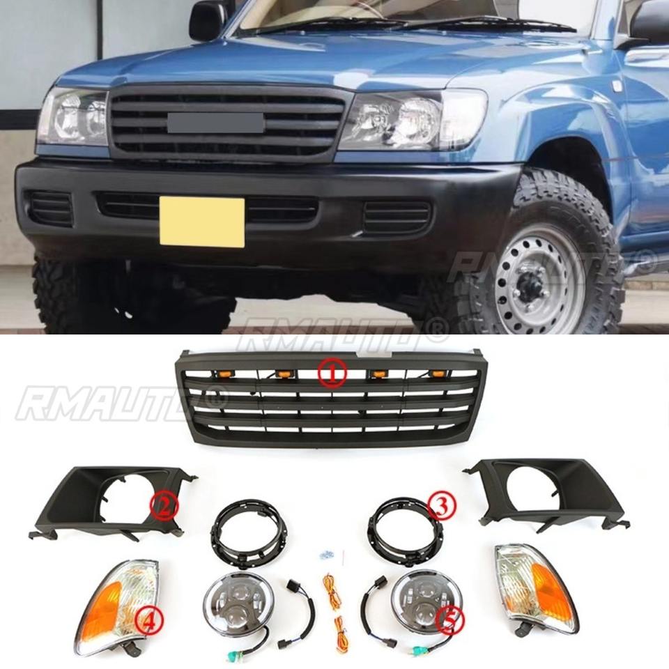 Parrilla Delantera para Auto, Parrilla Deportiva para Toyota Land Cruiser LC100 1998-2006, Kit de Carrocería, Accesorios para Auto