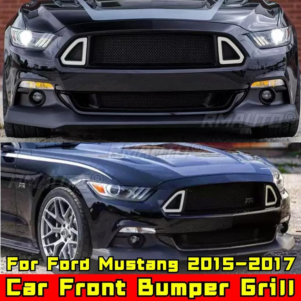 Parrilla Delantera para Auto, Parrilla Deportiva Compatible con Ford Mustang 2015-2017, Kit de Carrocería, Accesorios para Auto