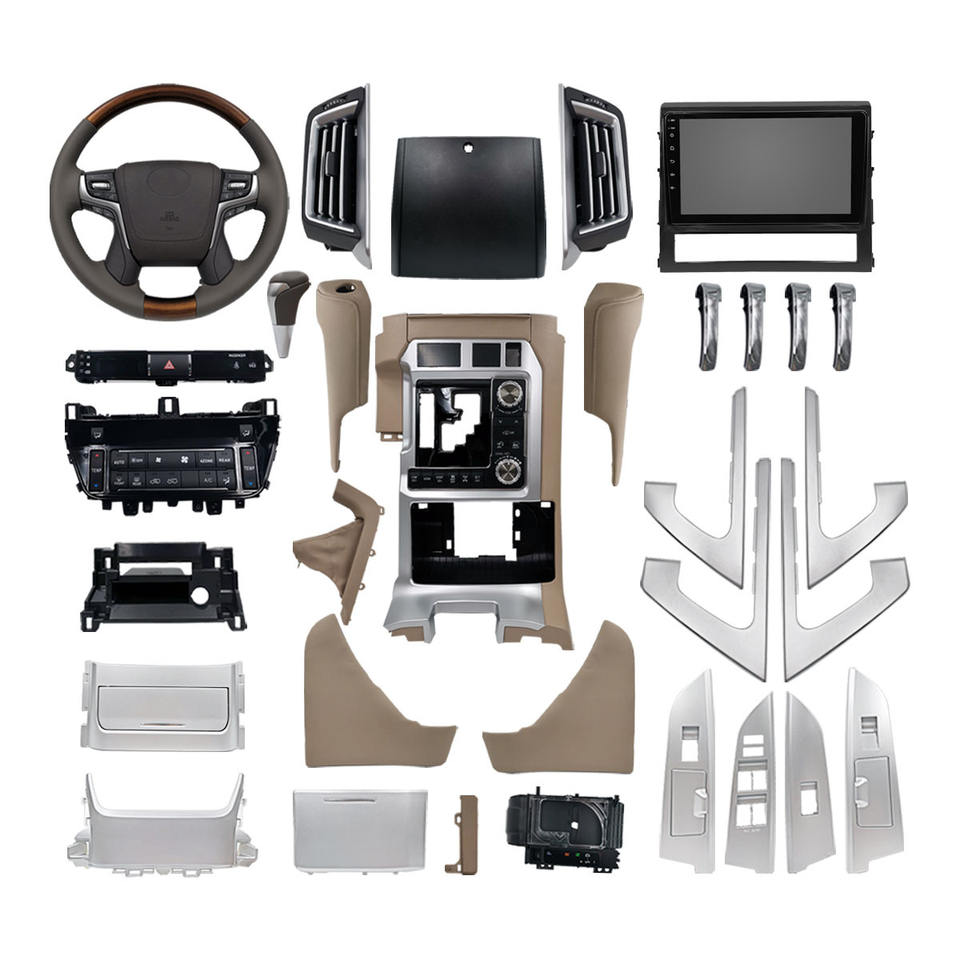 Juego Completo de Piezas de Modificación Interior para Auto, para Land Cruiser LC200, Kit de Panel de Marco de Tablero de Plástico Beige y Negro