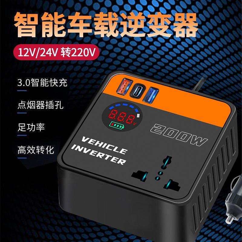 Inversor de Corriente para Auto 200W 12V 24V a 110V 220V con Doble Salida y Carga Rápida USB Tipo C para Vehículos