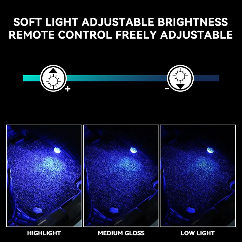 Luces LED de ambiente para coche, luces interiores con Control remoto inalámbrico, luces decorativas, luces coloridas sin cableado para coche
