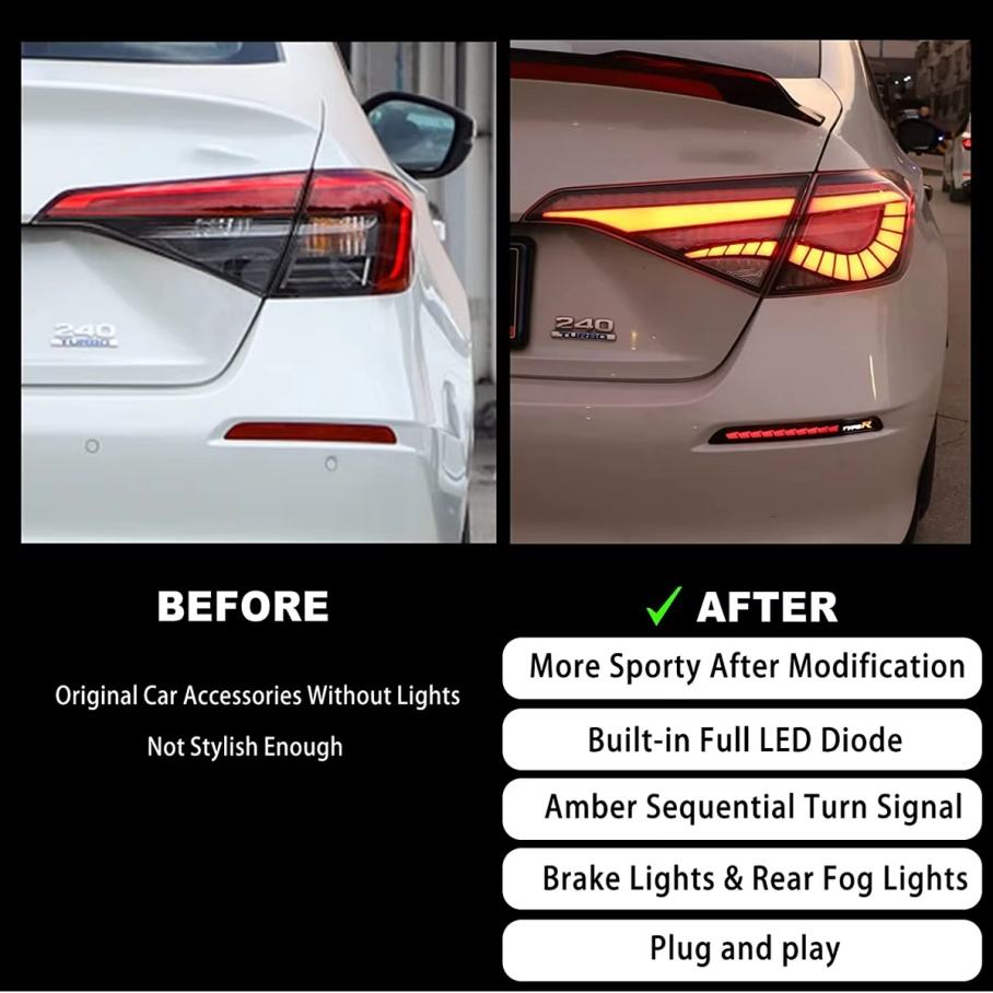 Luces LED para Automóvil, Reflector de Parachoques Trasero para Honda Civic 11.ª Generación 2022-2023, Tipo DRL, Estilo Tipo R, Luces Traseras con Diseño de Escamas de Dragón