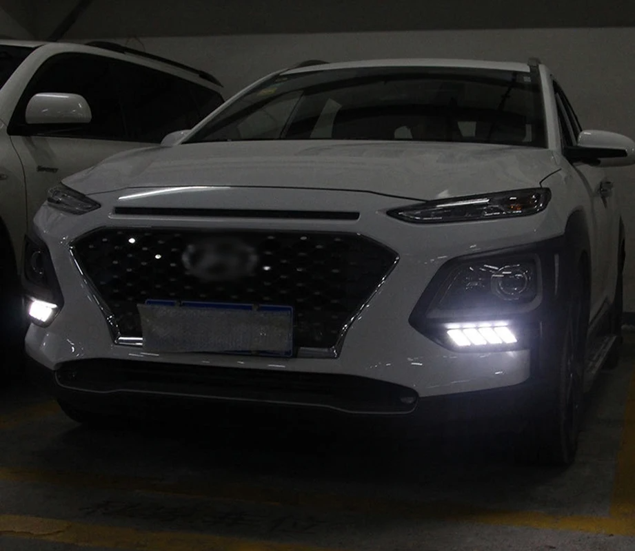 Luz de circulación diurna LED DRL modificada para coche con lámpara antiniebla de señal de giro amarilla para Hyundai ENCINO 218-2019
