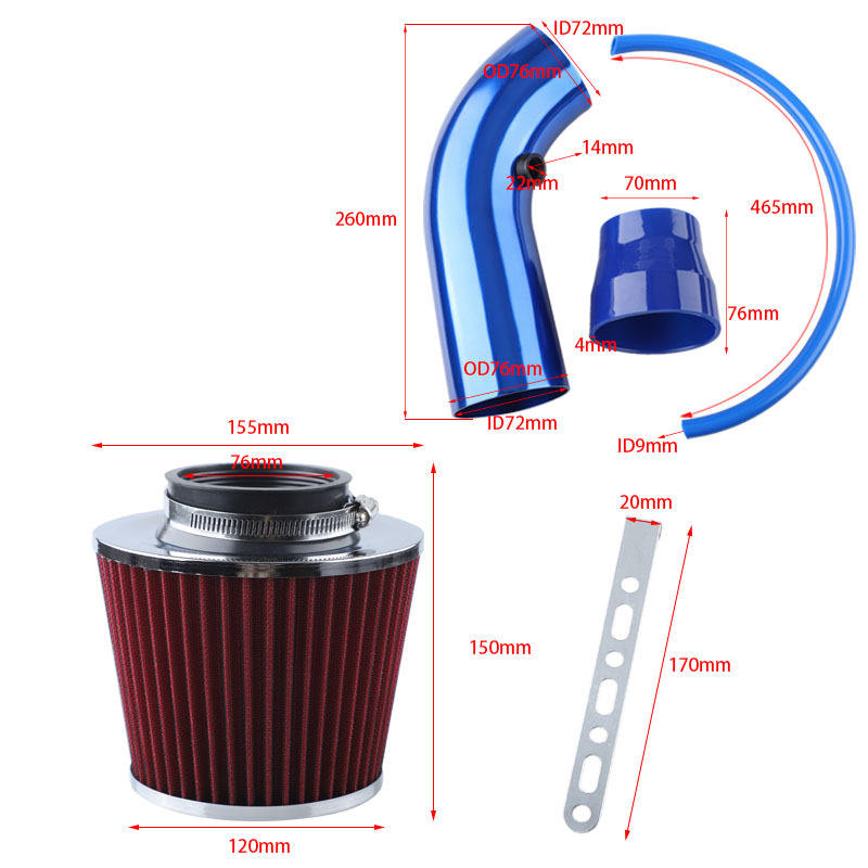 Juego de admisión de filtro de aire modificado para automóvil Entrada de flujo grande 76mm Juego de cabeza de seta de 3 pulgadas Tubo de admisión de aleación de aluminio