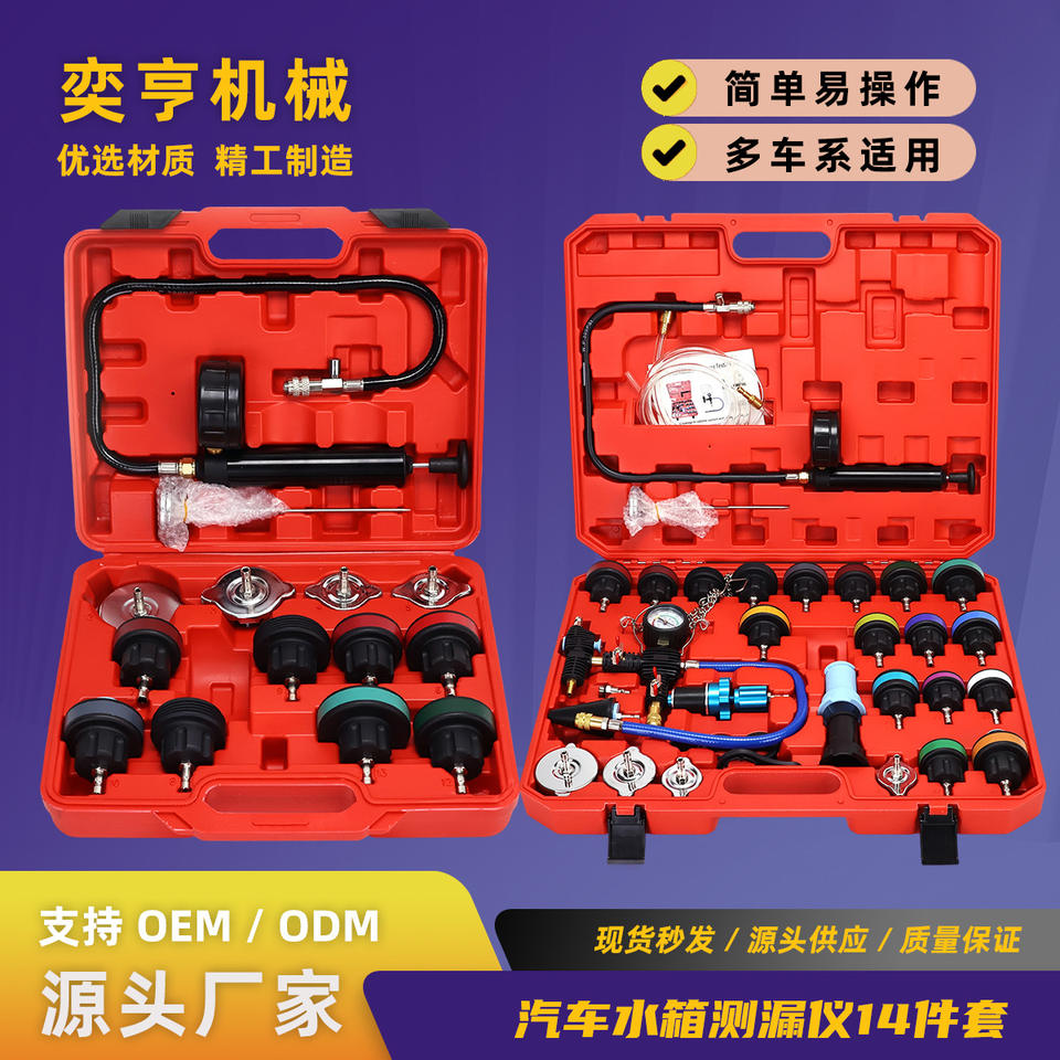 Juego de Herramientas para Probar la Presión del Radiador del Automóvil, 14 Piezas, Detector de Fugas, Vacuómetro, Reemplazo de Refrigerante, Kit de Inspección Automotriz Universal