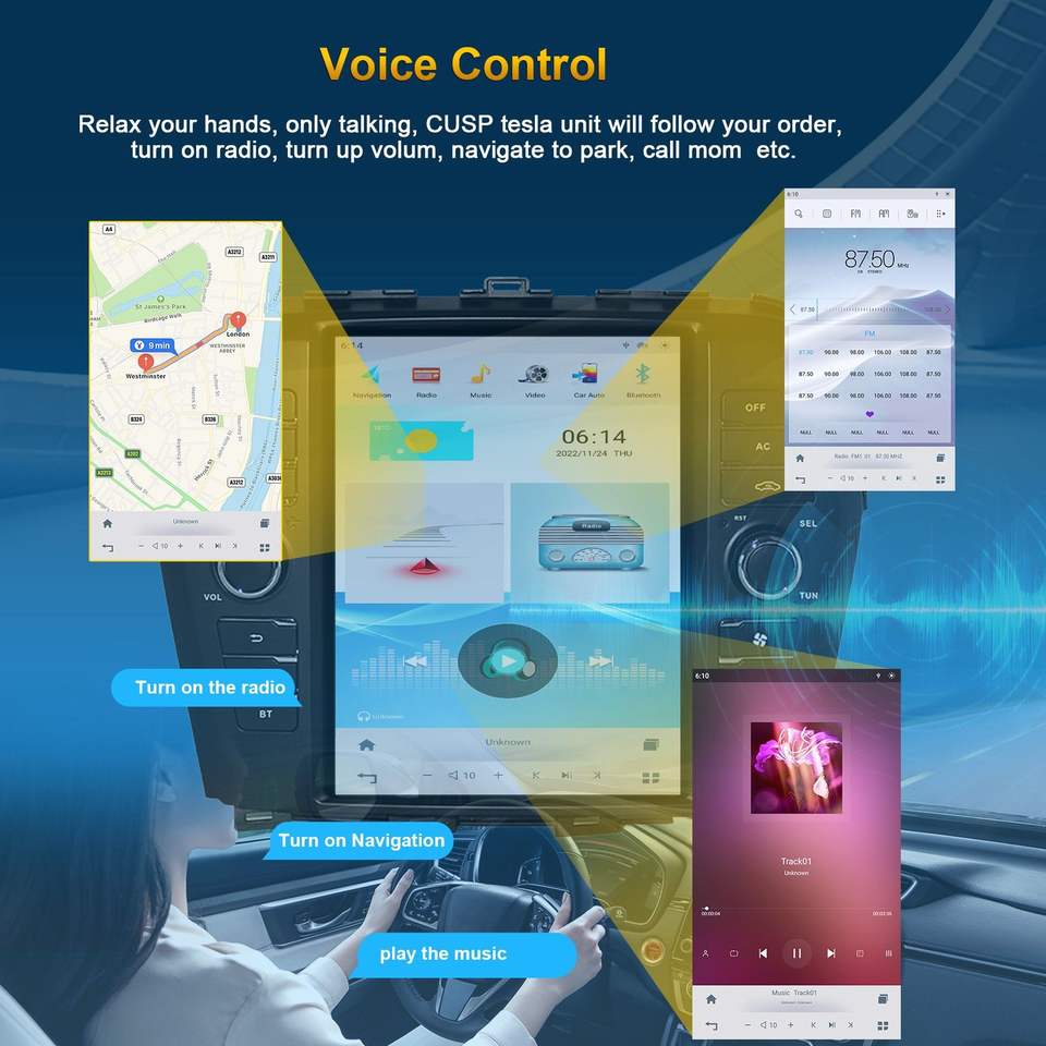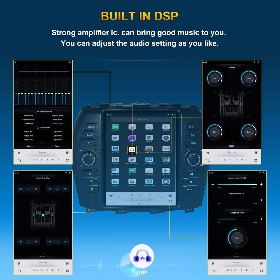 Estéreo, DSP, CarPlay, Enlace espejo, Android auto, Pantalla dividida, Administrador de archivos, Coche de Control de volante