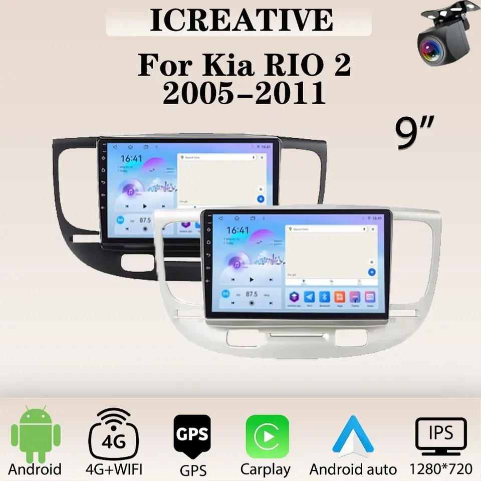 Radio de Coche Android para Kia RIO 2 2005-2011, Reproductor Multimedia Carplay, Reproductor de Video 2din, Estéreo para Auto, Unidad Principal de Audio, Navegación GPS de 9 Pulgadas