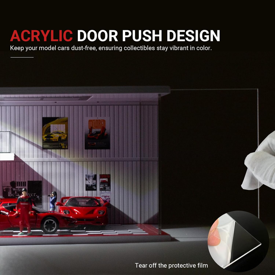Modelo de Taller de Reparación de Automóviles con Iluminación, Colección de Anime, Juguetes para Regalo, Decoración de Arte y Manualidades