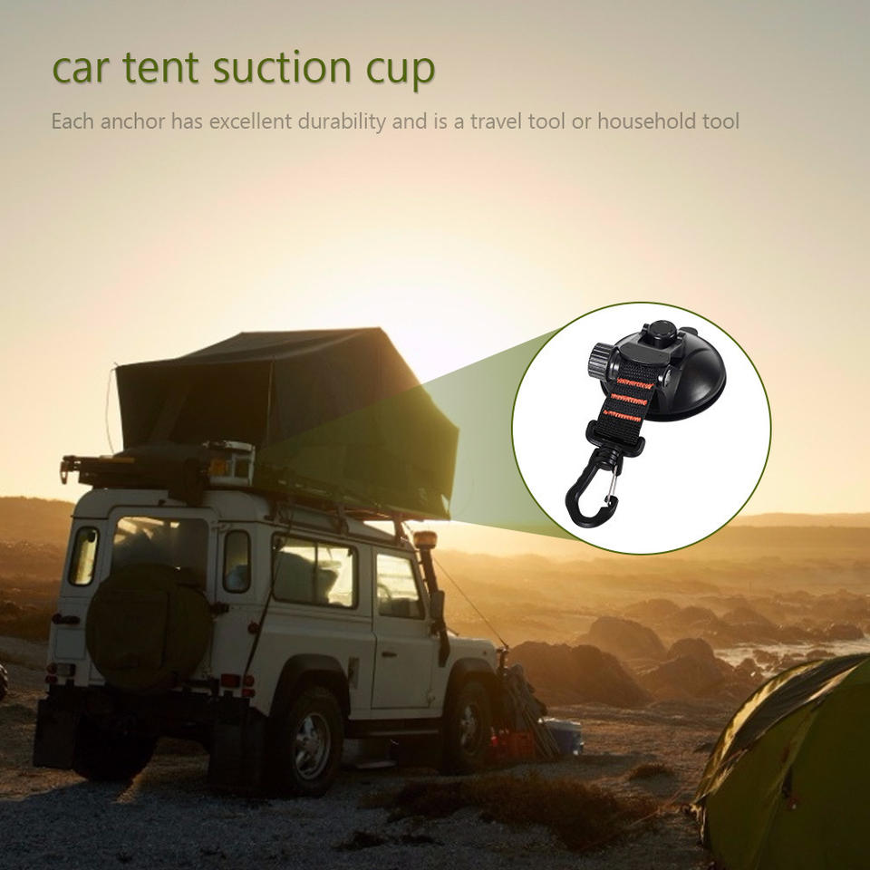 Ventosa para tienda de techo de coche, mosquetón giratorio 360 grados, gancho de nailon reforzado, portátil para viajes al aire libre, resistente al sol, lluvia, viento y rayos UV