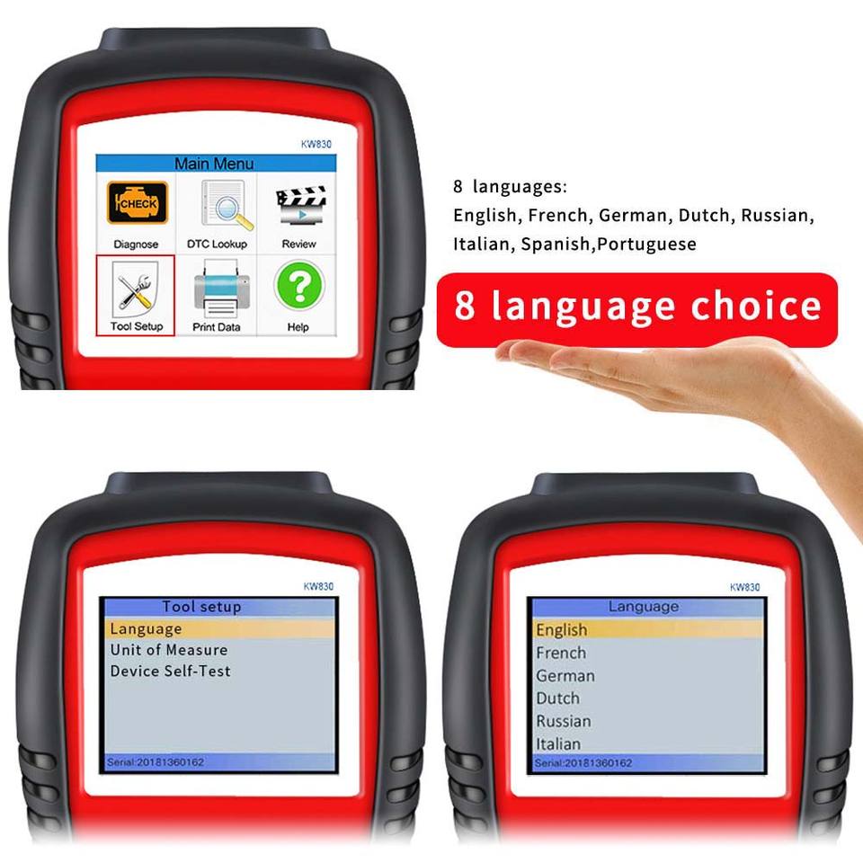 Escáner de coche KW830 ODB II herramienta de diagnóstico Universal comprobar Error EOBD OBD2 lector de código batería diésel Teste OBD Falla de motor automático