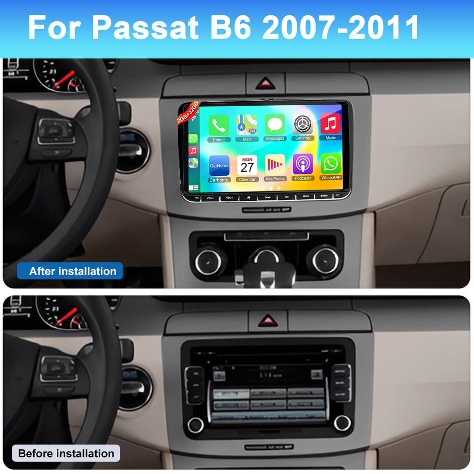Estéreo para Auto para Todos los Modelos, Radio Estéreo para Auto de 9 Pulgadas. Para Passat B6 2007-2011, Navegación GPS, 2+32G, CarPlay, 2gb+64gb