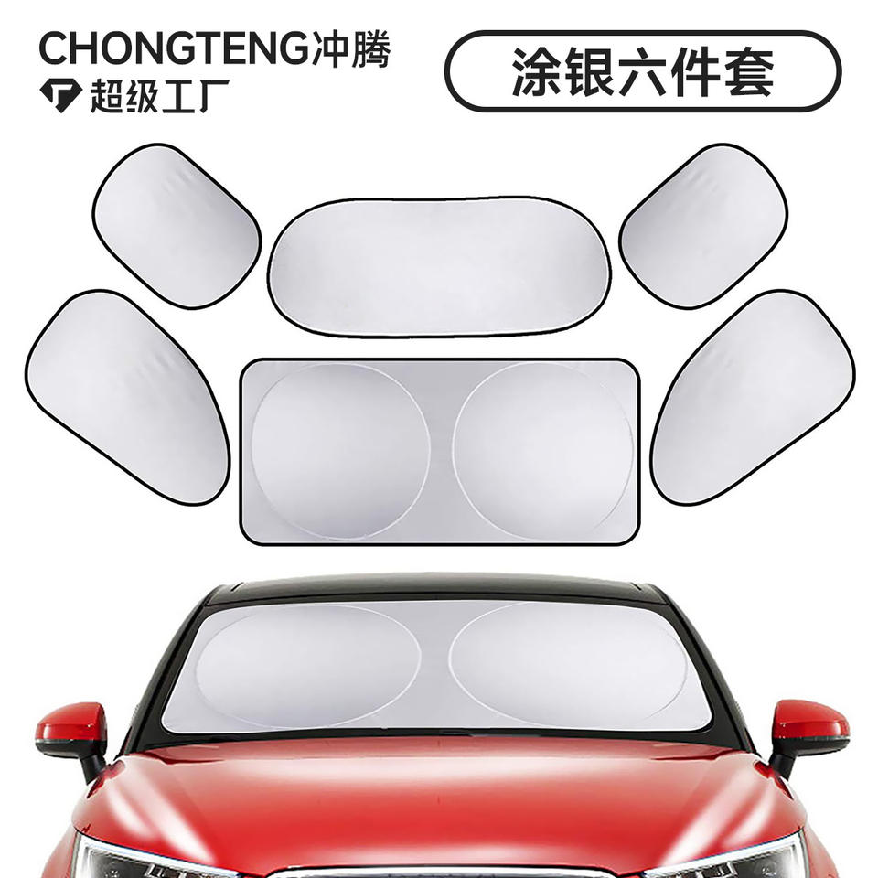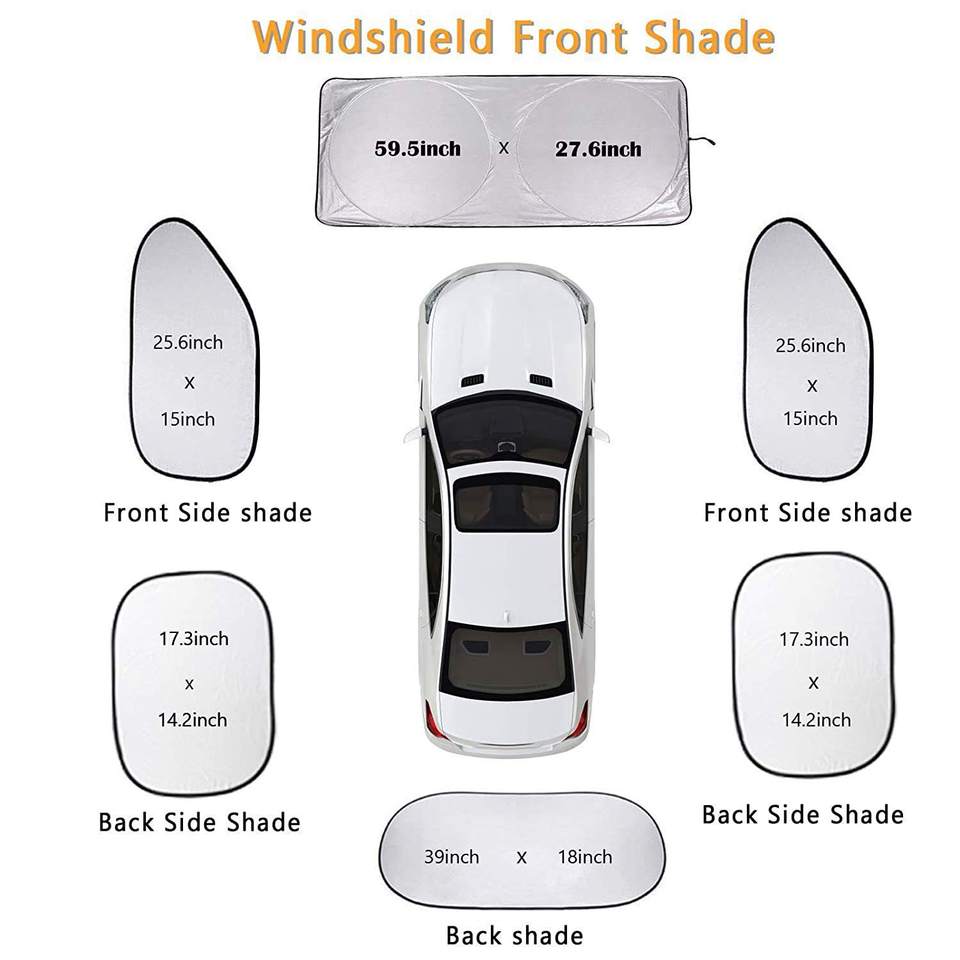 Parasol para coche, parabrisas delantero y lateral, recubierto de plata, juego de seis piezas, plegable, aislamiento térmico, protección de verano