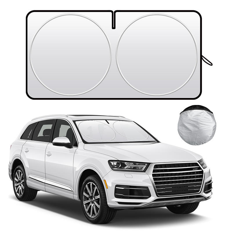 Parasol para Coche, Parabrisas Delantero, Color Plata Titanio, Doble Anillo, Tamaño Grande 150x80cm, Aislamiento Térmico, Protección Solar, Instalación con Ventosas