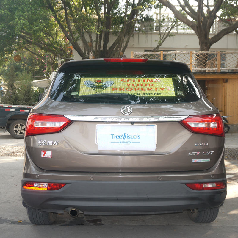 Coche taxi ventana trasera pantalla LED transparente publicidad logo 4G WiFi señal comercial inalámbrica