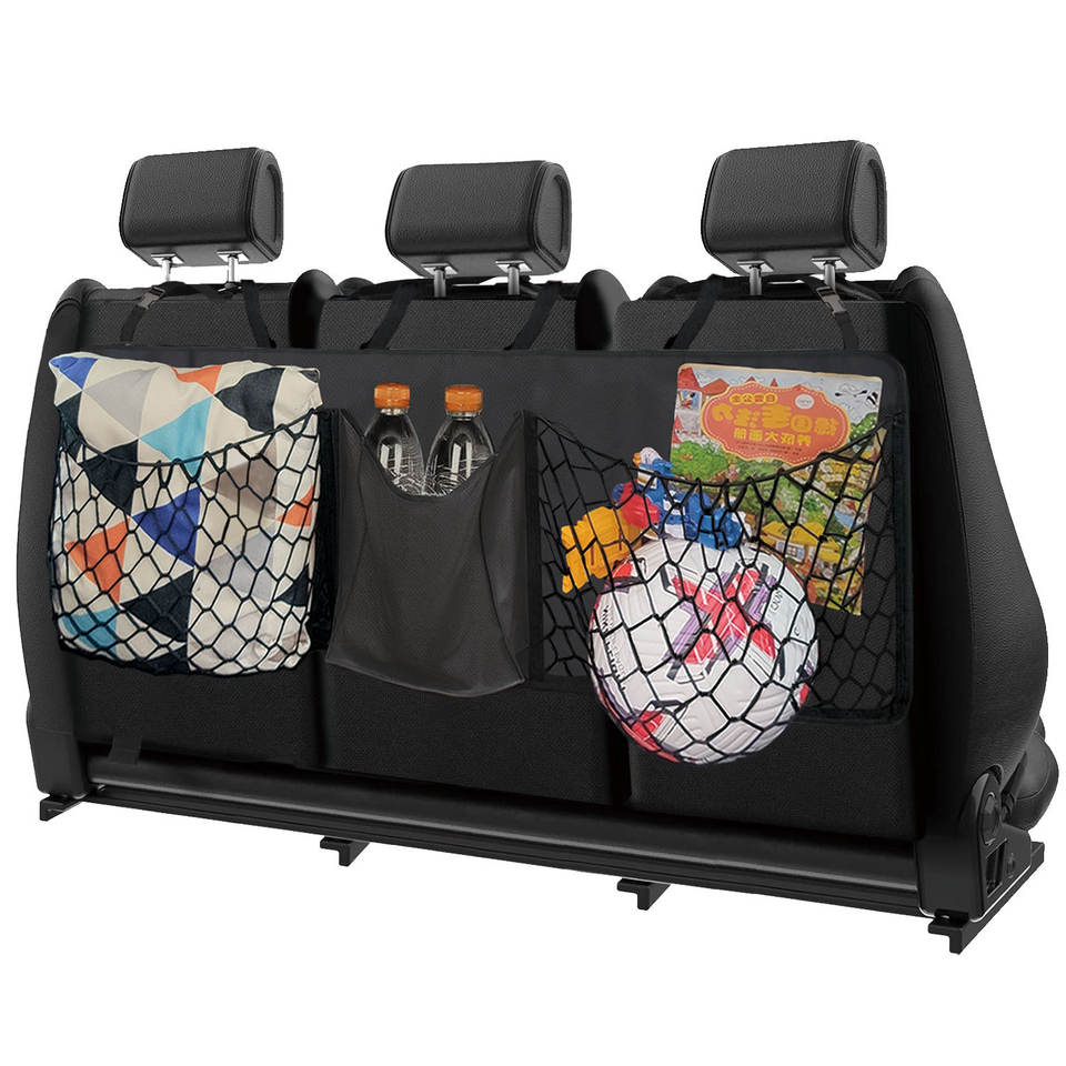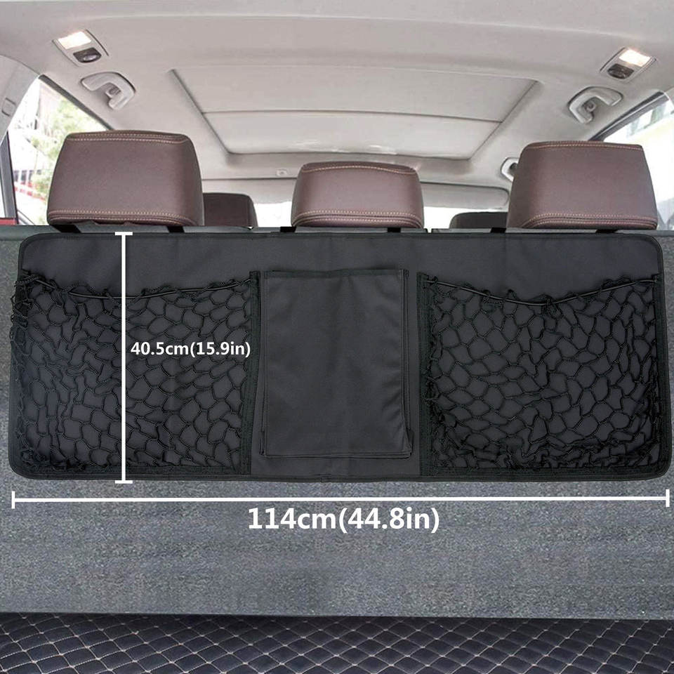 Bolsa de Red para Almacenamiento en el Maletero del Coche, Gran Capacidad, 4-7 Compartimentos, Tela Negra, Personalizable para Asientos Traseros