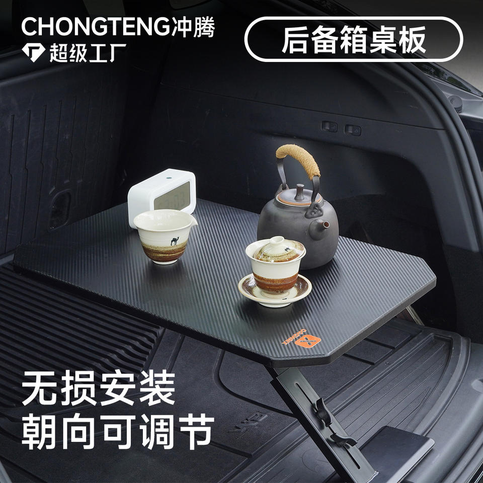 Mesa Rectangular para Maletero de Coche, Textura de Fibra de Carbono, Instalación a Presión, Diseño Minimalista Portátil para Exteriores