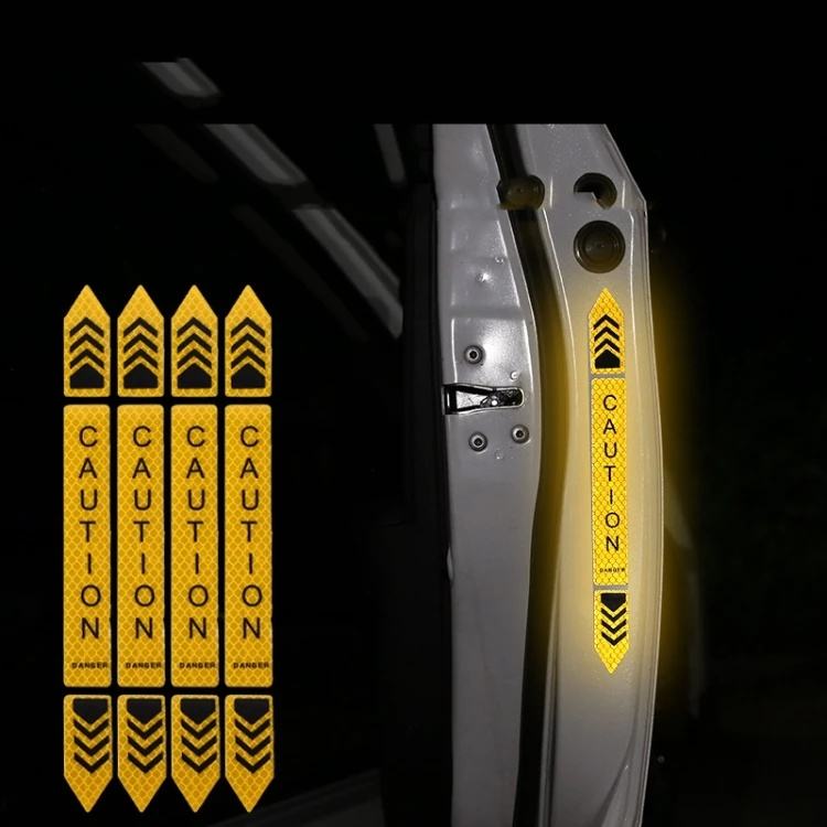 Pegatina de advertencia para coche, rojo, azul, amarillo, 4 Uds., advertencia para puerta de coche, cinta reflectante para Borde de noche, pegatina para puerta, tira reflectante para el cuerpo