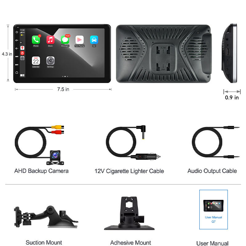 Nombre del producto:Pantalla portátil inalámbrica para coche de 7 pulgadas con CarPlay y Android Auto