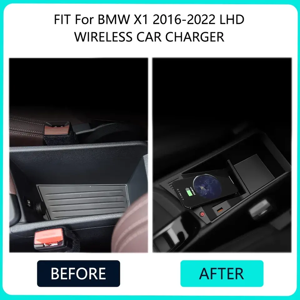 Cargador inalámbrico para coche, cargador de carga rápida móvil, caja de almacenamiento para BMW X1 2016 2017 2018 2019 2020, accesorios para coches