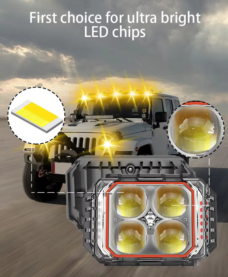 Luces de Trabajo para Auto, Faros Delanteros LED de Doble Fila con 4 Perlas LED de Alta Potencia, Efecto de Iluminación Secuencial Izquierda-Derecha, Luz Delantera LED