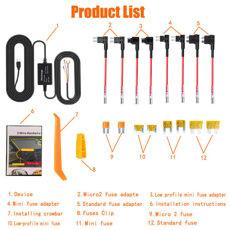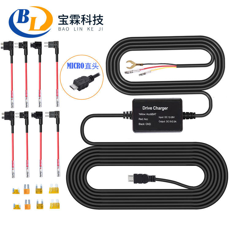 Car step-down cable 3-core time-lapse streaming dashcam 12V to 5V parking monitoring cable L165