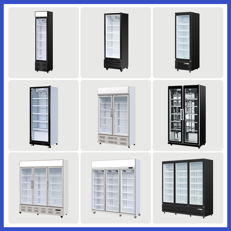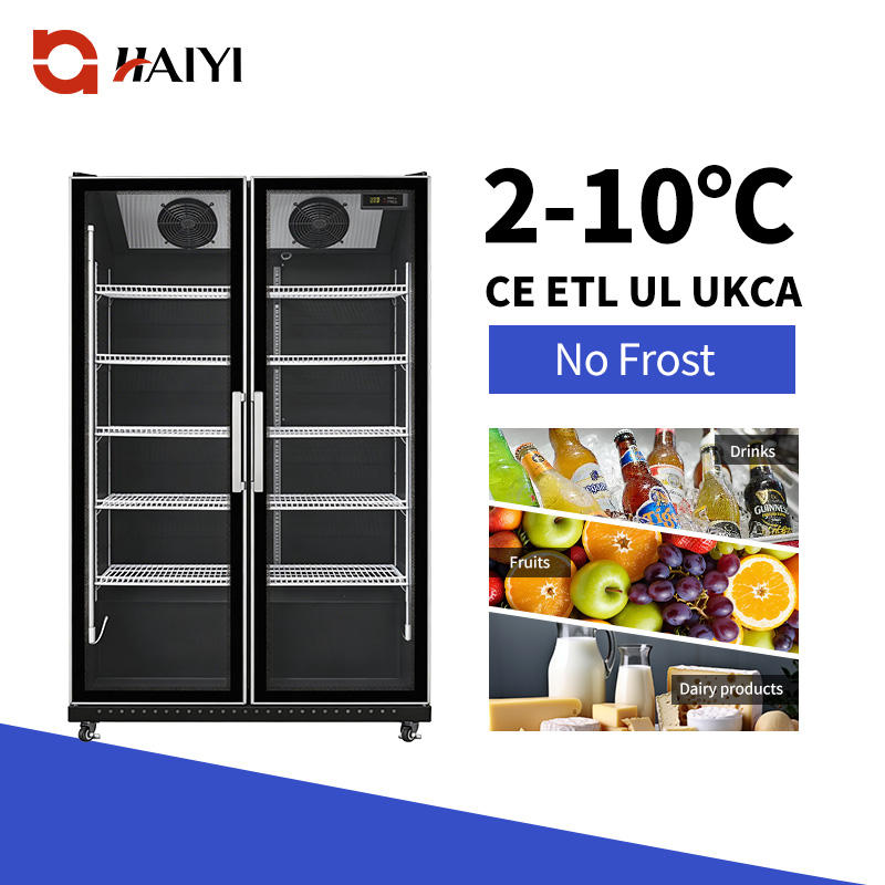 Refrigerador Vertical para Supermercados, Equipo de Refrigeración, Gabinete Refrigerador Doble para Bebidas