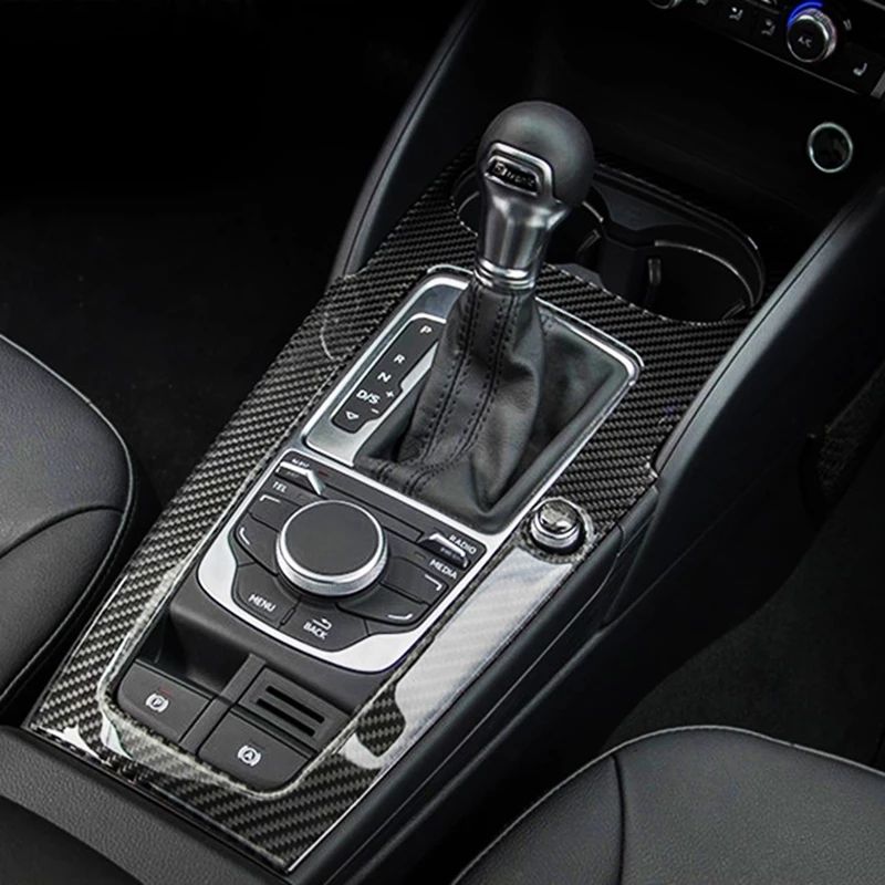 De fibra de carbono de la consola reposabrazos Trim de cambio de engranaje de taza de agua de ajuste para Audi A3 8V 14-19 Interior Accesorios