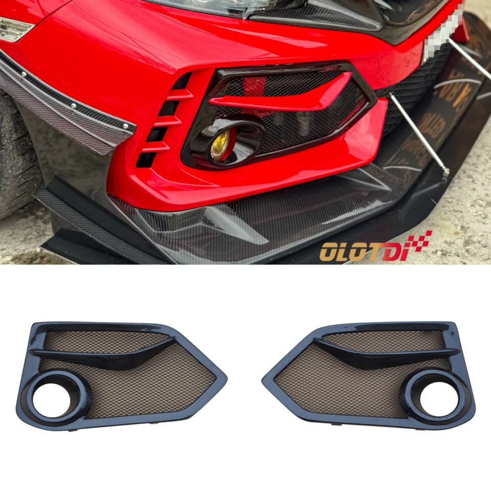Parachoques Delantero Estilo JS de Fibra de Carbono con Cubiertas para Faros Antiniebla para Honda Civic 10TH TYPE R FK8 Auto Tuning