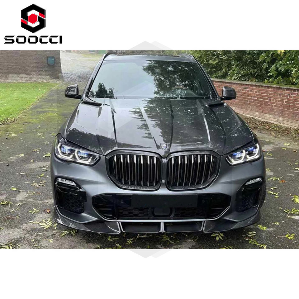 Kit de carrocería de estilo LD de fibra de carbono para BMW X5 G05 xDrive 40i M50i 30d, capó de rejilla de labio delantero, faldones laterales, alerón difusor trasero 2019 +