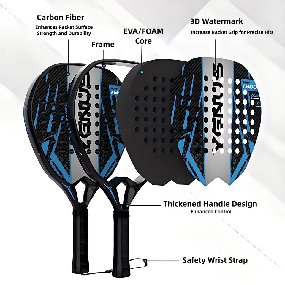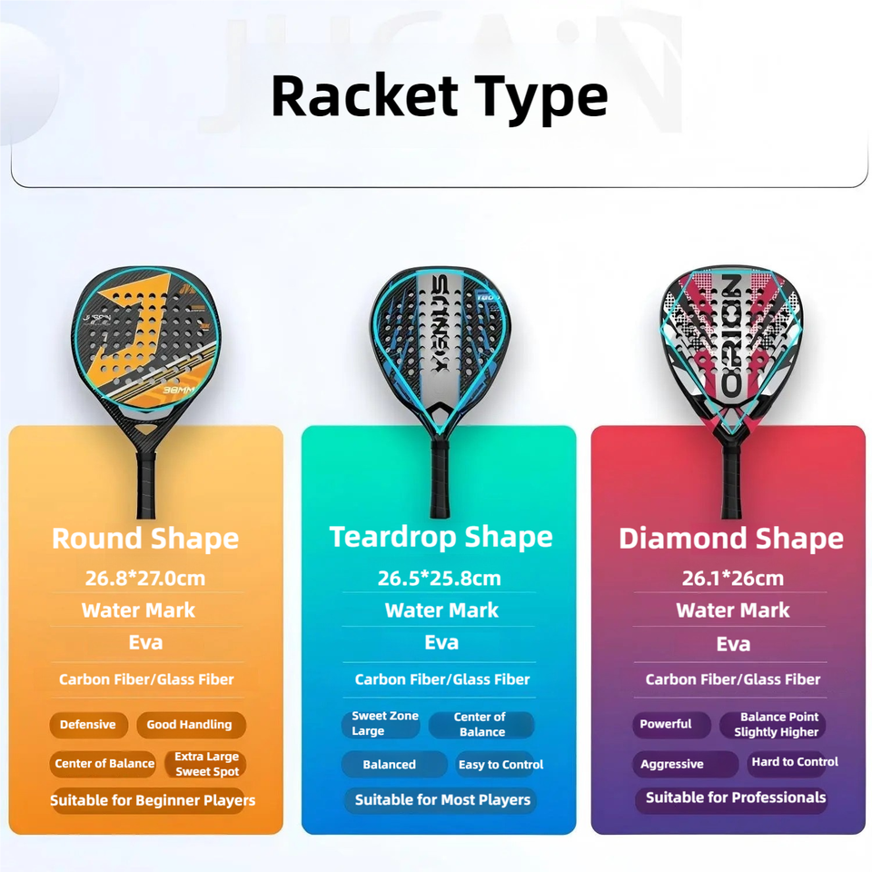 Carbon Fiber Padel Racket 12K 3K Forma Híbrida Redonda con Goma EVA Media para Principiantes e Intermedios