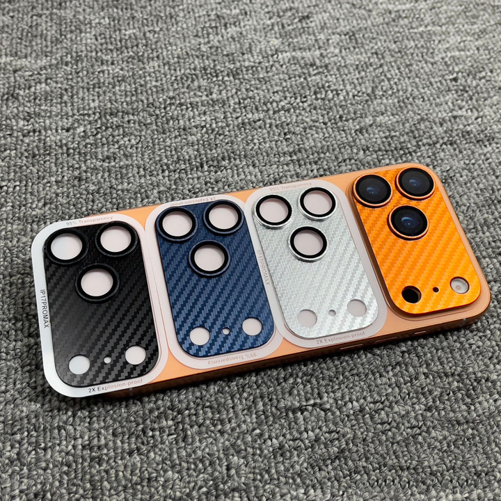 Protector de Lente de Cámara con Patrón de Fibra de Carbono para iPhone 17 Pro Max, Cubierta de Cámara de Vidrio Templado Metálico para iPhone 17 Pro